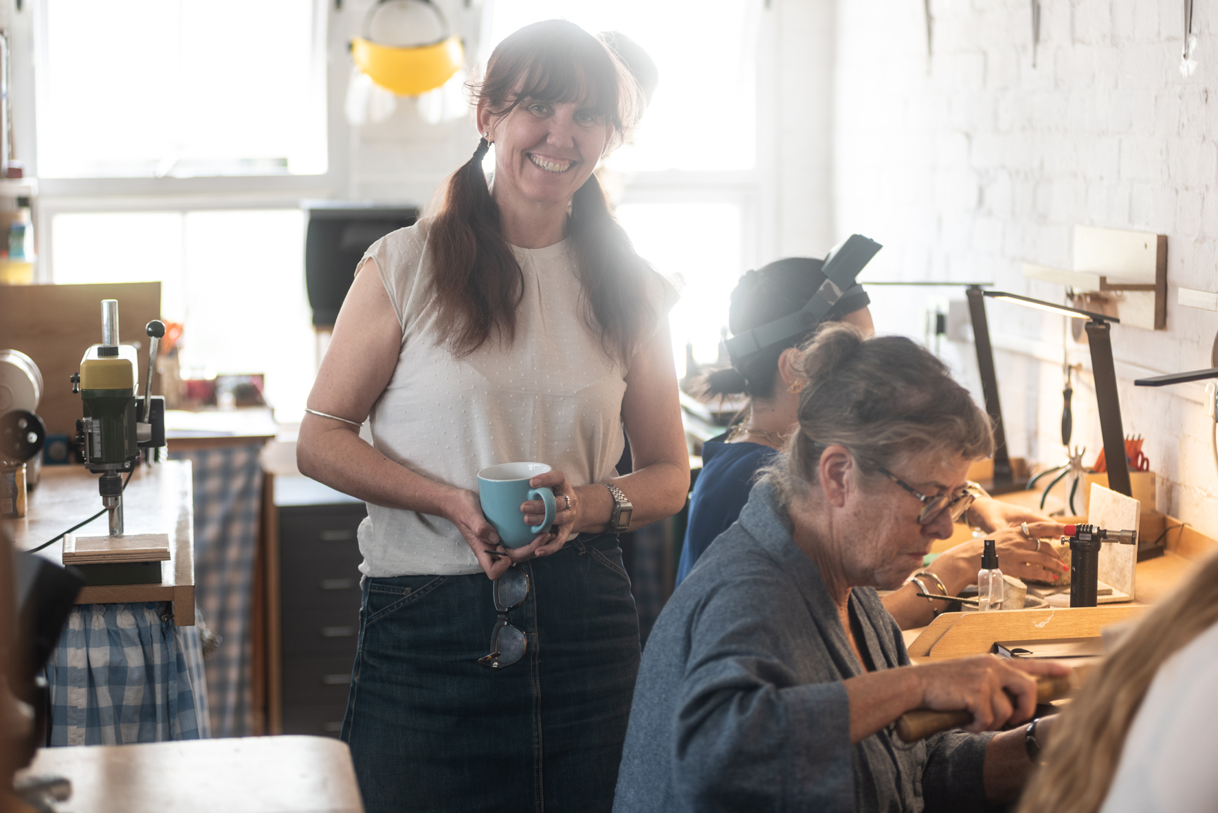Laila has been teaching since 1999 and currently runs the teaching studio alongside designing and creating her own collections of jewellery, teaching short courses at West Dean College and drinking copious cups of tea.